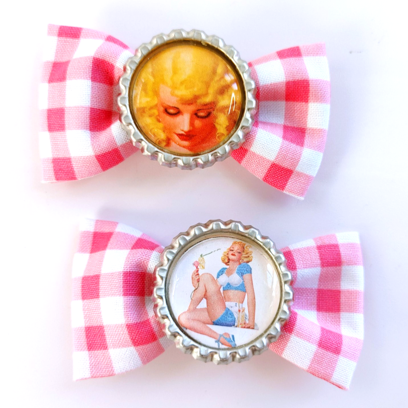 Handmade Shop Categories: All Hair Bows All Hair Bows Handmade Tan Red Bow Barrette Pinup Girls Illustration Bottle Cap Center $4.00 Buy Now Added! Handmade Retro Comic Book Yellow Bow Barrette Pinup Girls Bottle Cap $4.00 Buy Now Added! Handmade Retro Comic Book Bow Barrette Pinup Girls Bottle Cap Black & White $4.00 Buy Now Added! Handmade Gibson Girl Illustration Brown and Red Bow Barrette Bottle Cap Center $4.00 Buy Now Added! Handmade Light Brown Bow Barrette Ladybug & Fish Illustration Bottle Cap Center $4.00 Buy Now Added! Handmade Bow Barrette Halloween Monsters Illustration Button Center - Set of 4 $6.00 Buy Now Added! Handmade Rockabilly Punk Hair Bow Clips Leopard Heart Skull Checkerboard Set 2 $4.00 Purchase Added! Handmade Alice in Wonderland Hair Bow Clips Bottle Cap Vintage Illustration Set $4.00 Purchase Added! Handmade Retro Pinup Girl Hair Bow Clips Gingham Checkered Bottle Cap Set 2 $4.00 Purchase Added! Set of 2 Handmade Retro Pin-up Girl Floral Bottle Cap Hair Bow Clips $4.00 Purchase Added! Handmade Retro Pin-up Girl Pink Gingham Bottle Cap Hair Bow Clips Set of 2 $4.00 Purchase Added!