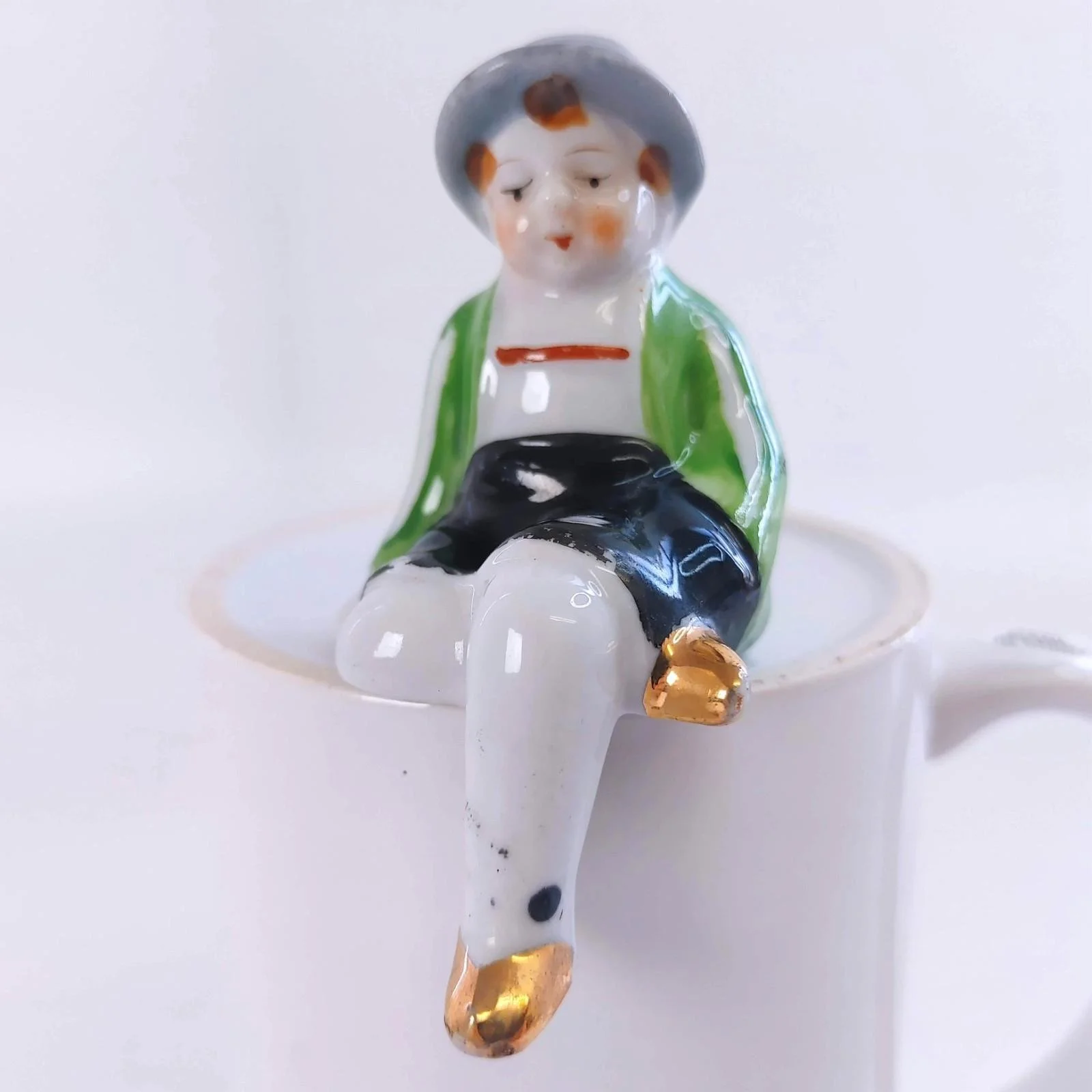 This is a charming vintage ceramic candle holder from the 1990s, perfect for adding a touch of nostalgic Halloween spirit to your home. It features a cheerful, smiling ghost figure with a mischievous black and yellow spider clinging to its shoulder. The ghost's hollowed body is designed to hold a candle or function as a sconce.