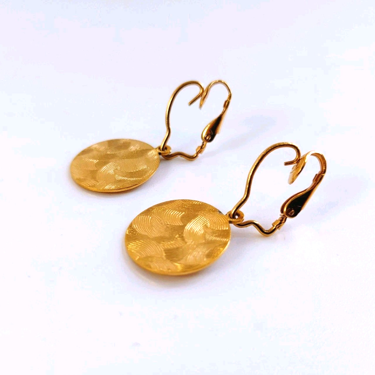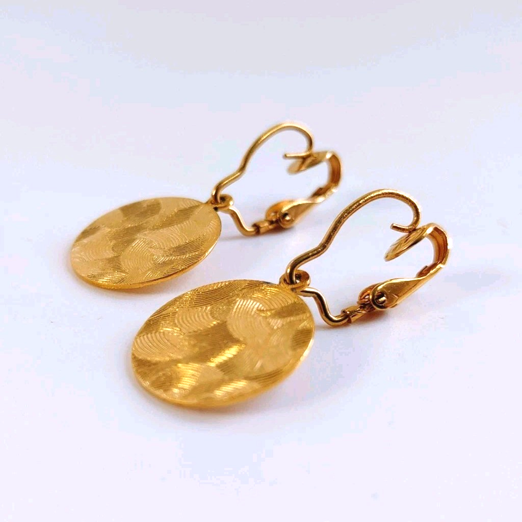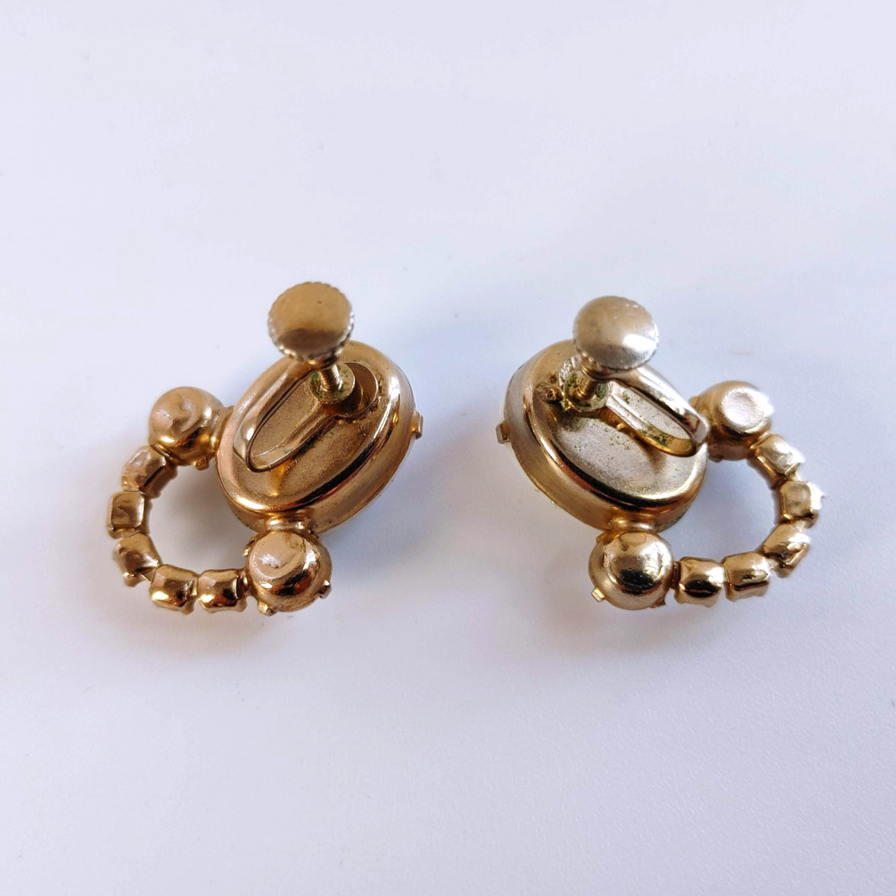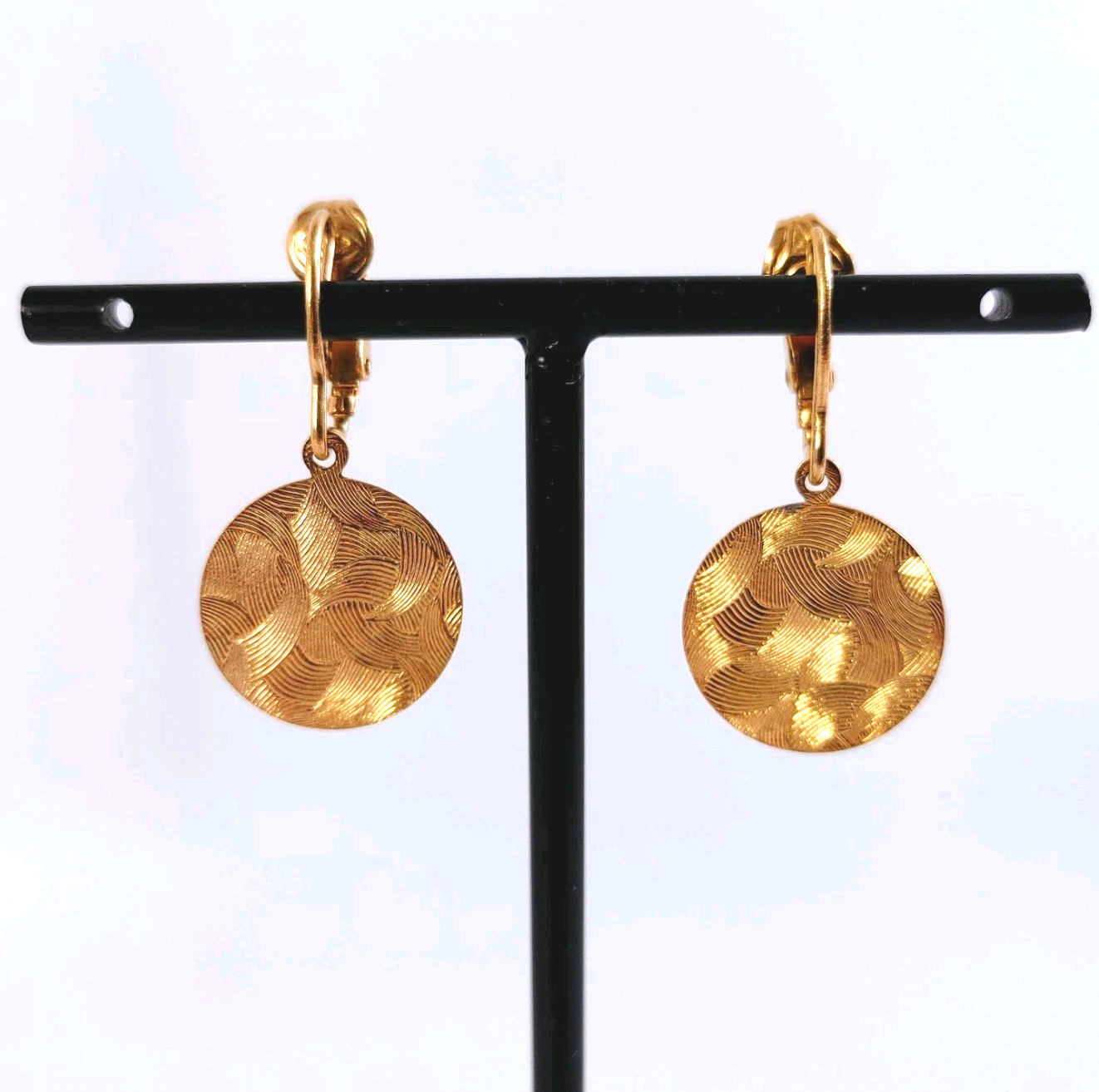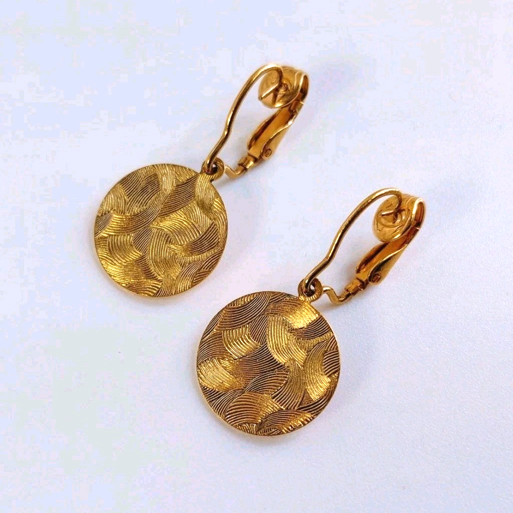 These beautiful earrings feature a swirling gold-tone design, creating a classic and sophisticated look. Crafted from high-quality materials the earrings measure approximately 7/8 inches (2.23 cm) in diameter and clip securely onto your ears. Signed Monet on the back which adds to the authenticity of this vintage piece. Estimated to the 1960s.