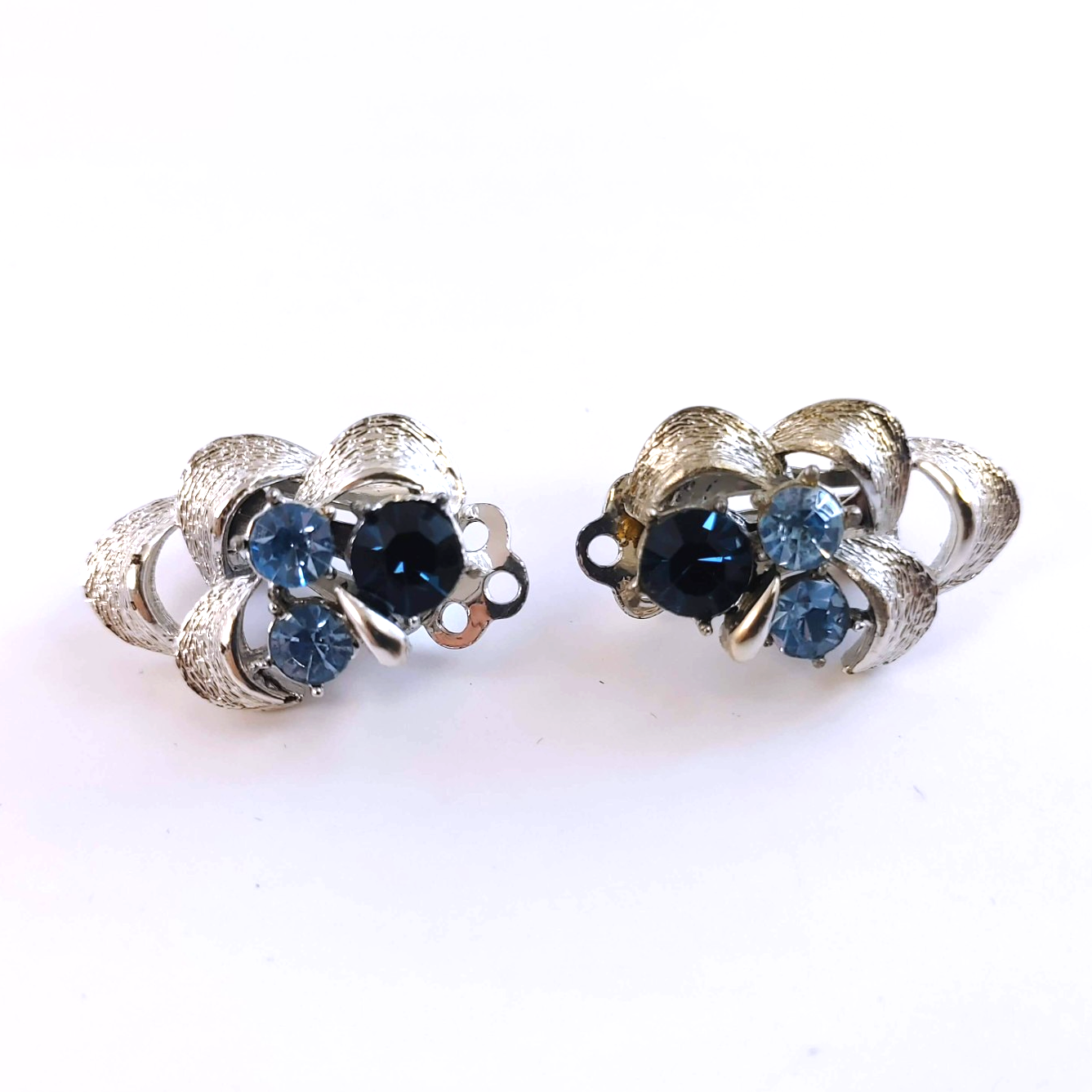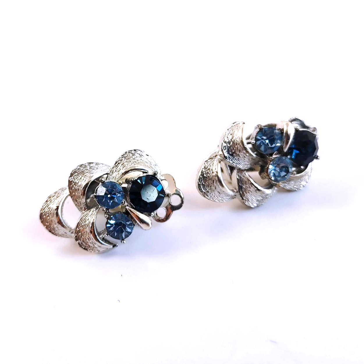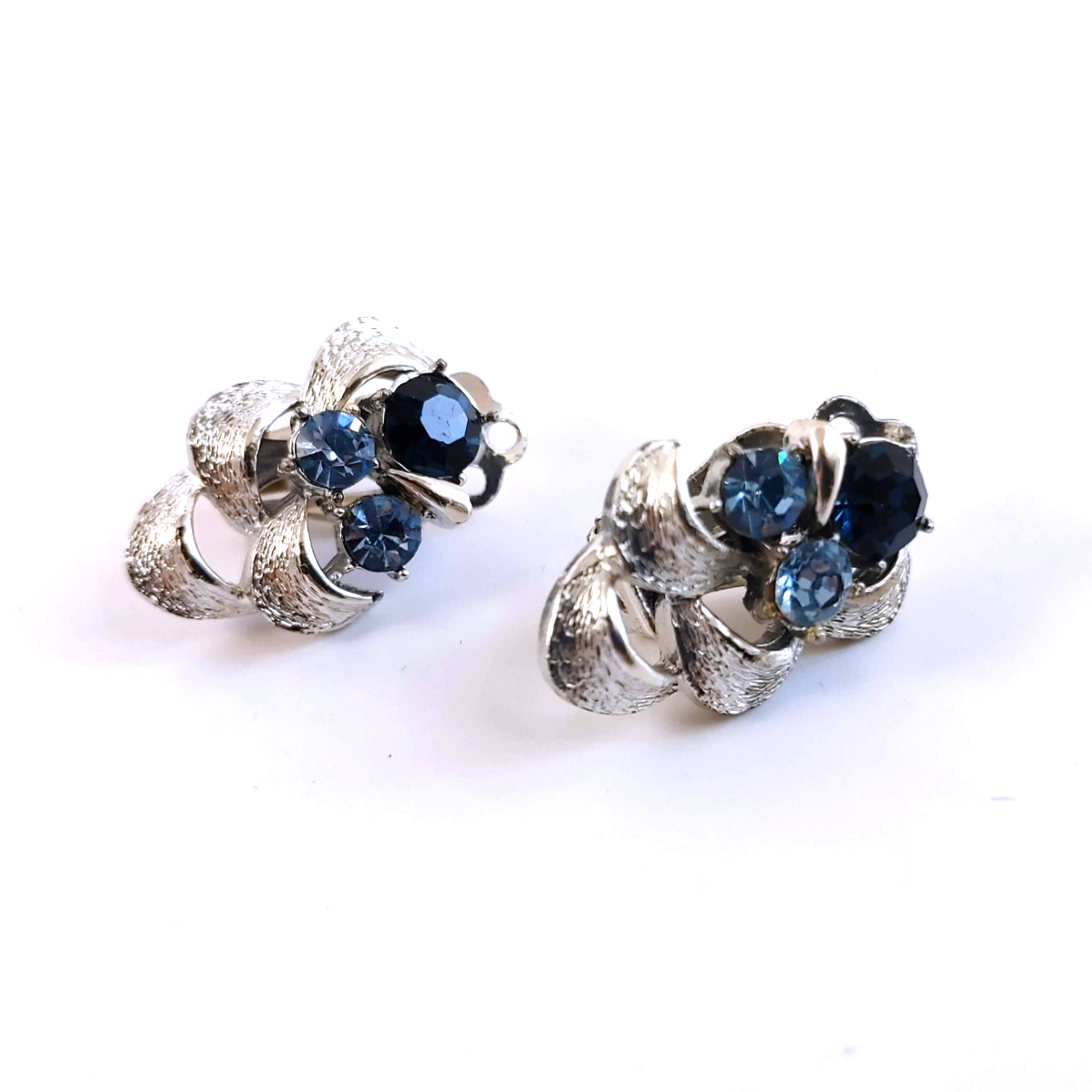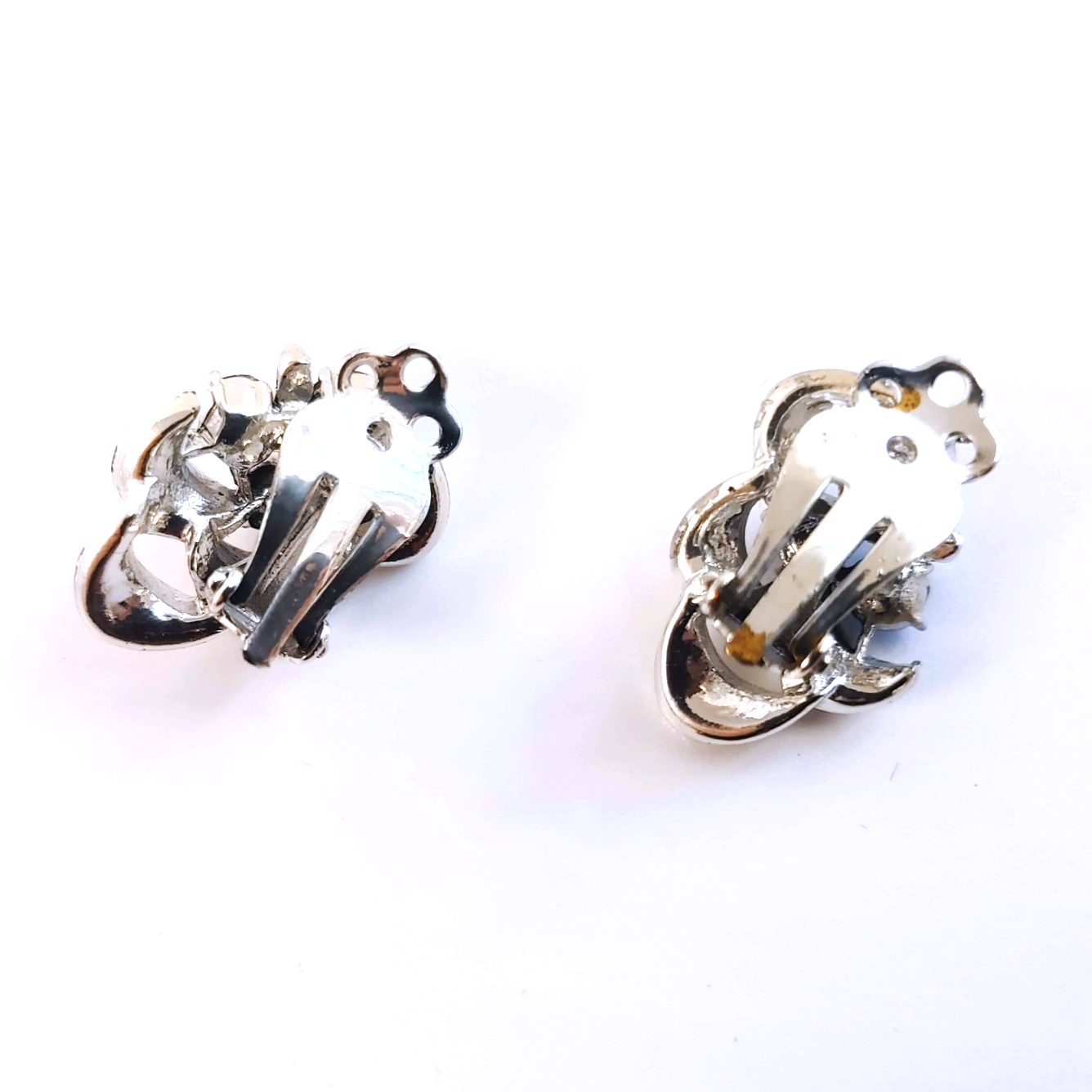 These exquisite vintage silver-tone stud earrings perfectly blend timeless elegance and dazzling charm. Adorned with nine clear, sparkling rhinestones encircling a larger 1/4" green crystal rhinestone, these earrings effortlessly capture attention.
